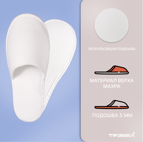 Тапки спанбонд, закрытый мыс (100 пар), одноразовые, белые, с накатом и подошвой 5 мм